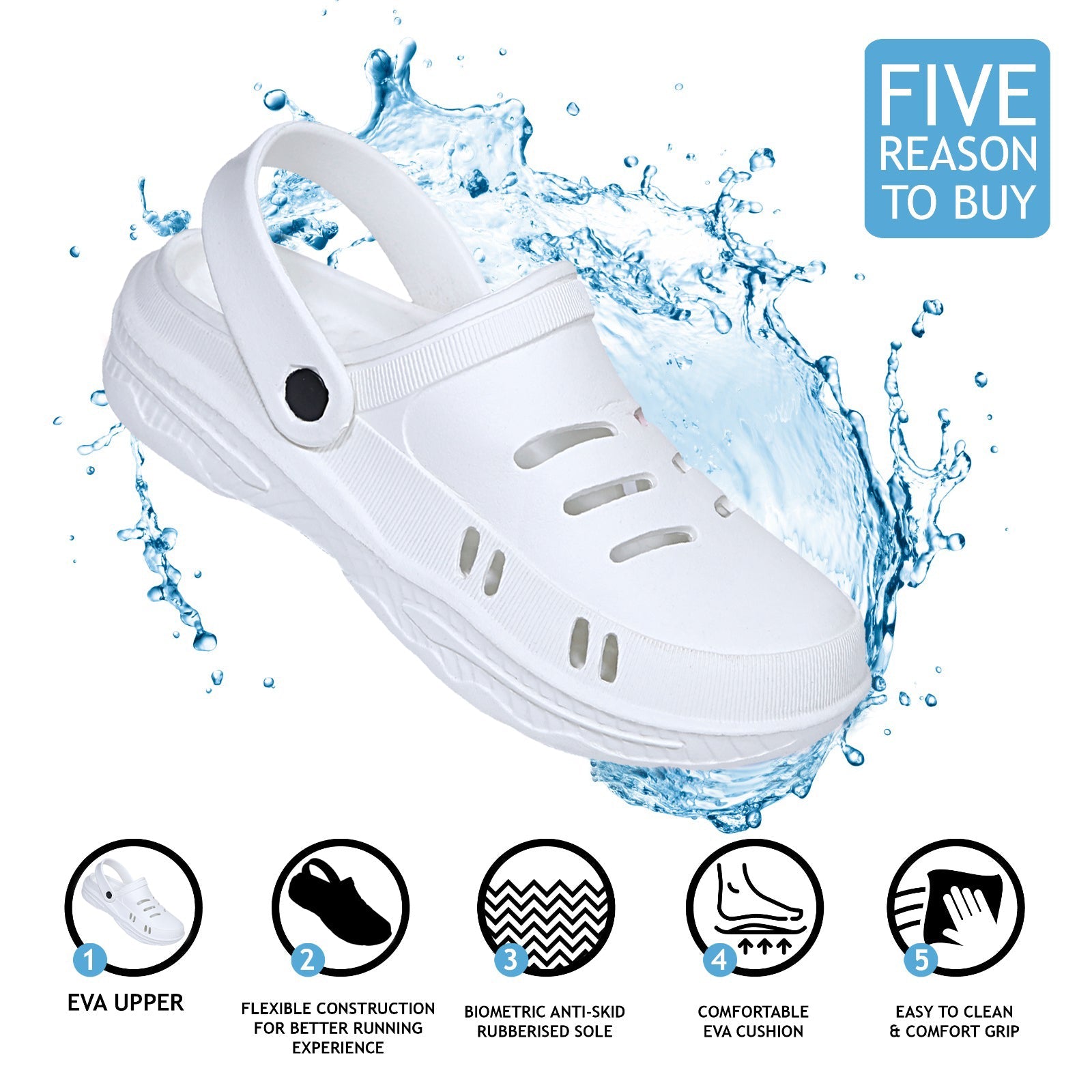 Waalk EVA clogs are 100% waterproof, making them perfect for any environment — rain, garden, kitchen, hospitals, or even beaches. Just rinse them off and they’re good as new.